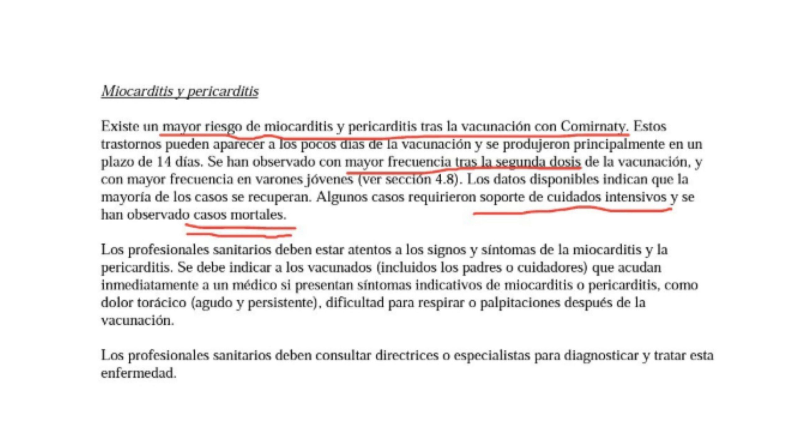 La Comisión Europea documenta que el 30 de agosto la Agencia Europea del Medicamento (EMA) amplió la ficha técnica de la vacuna de Pfizer para añadir que ha provocado “casos mortales” (las miocarditis y pericarditis ya habían sido reconocidas mucho tiempo atrás “con mayor frecuencia en varones jóvenes”, según prospecto y ficha técnica de la vacuna). Pero, ni las muertes que provocan ni las graves enfermedades acaecidas importan al Gobierno ni a los colegios de médicos ni asociaciones profesionales varias que por otra parte no se ruborizan en reconocer que reciben dinero de las farmacéuticas y declaran abiertamente tener graves conflictos de interés con ellas.